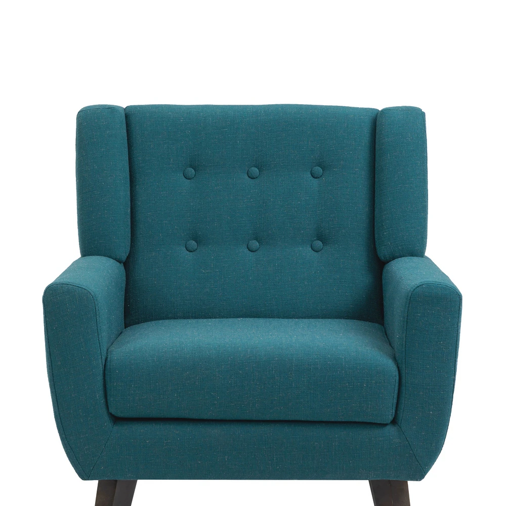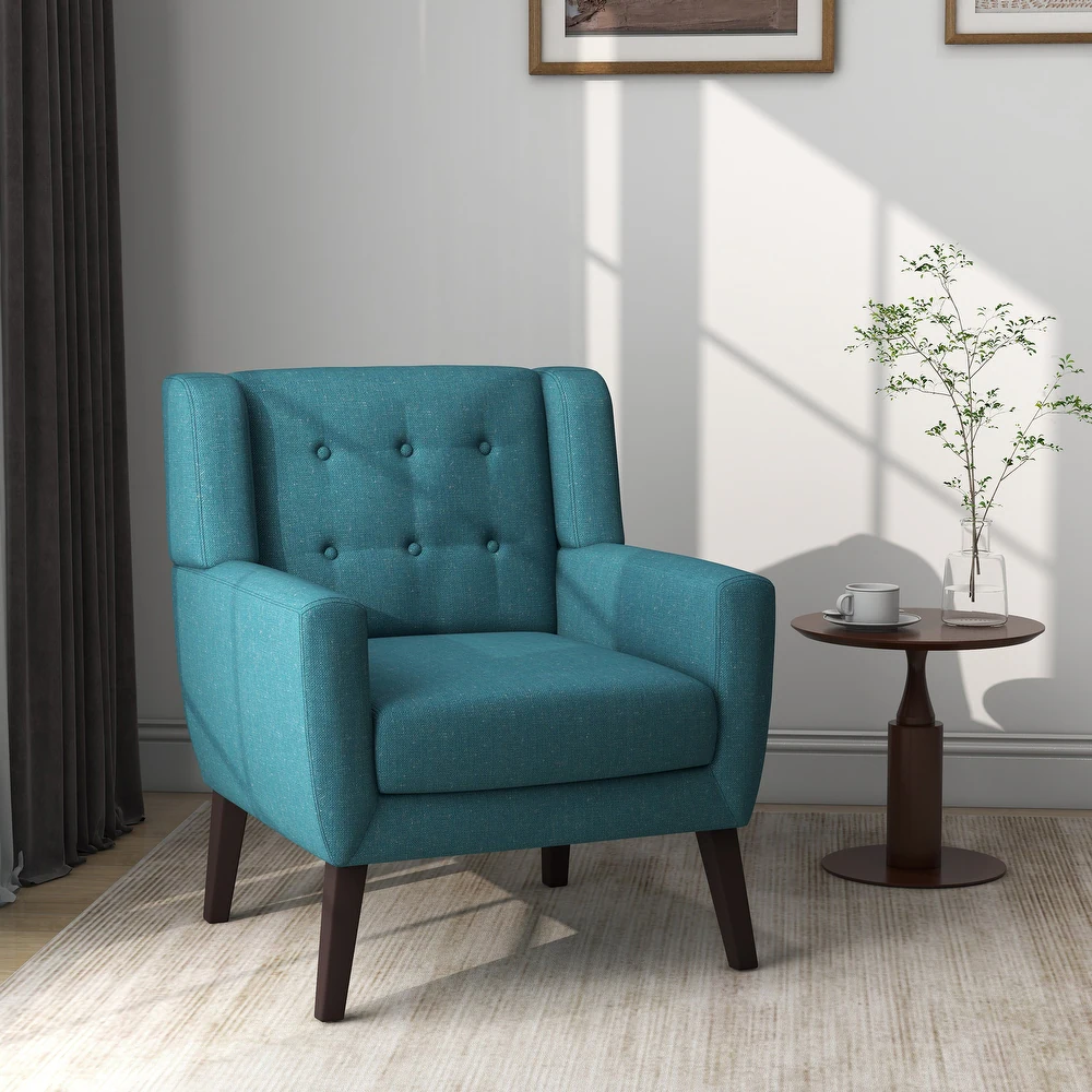 Add an air of sophistication to your living space with this Modern Cotton Linen Upholstered Armchair Tufted Accent Chair. The soft and durable skin-friendly fabric cover, engineered wood frame, and high-density foam cushions provide the perfect combination of comfort and durability. The elegant tufted design, concise back, and integrated arms add a contemporary-traditional look to this comfortable chair. This armchair is versatile enough to fit in any room of your home, whether it be the living room, dining room, or home office. Available as a single chair, set of two or sectional, it comes with solid wood legs and universal foot stops with a black finish.